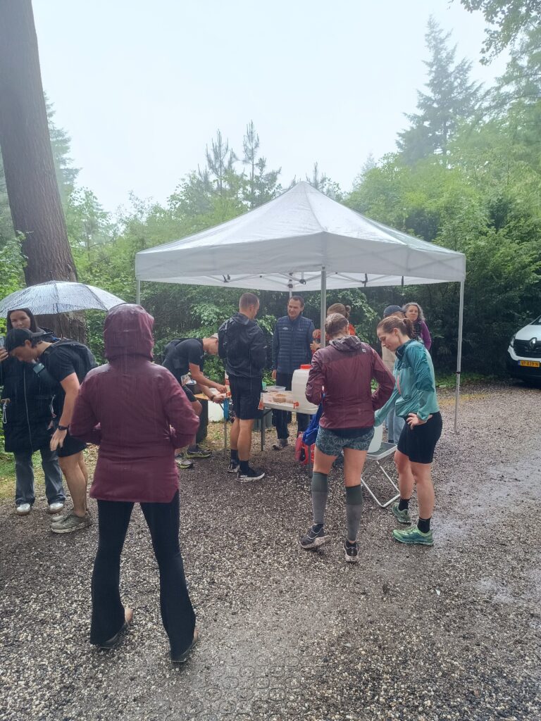 De verzorgingsposten waren telkens een mooi gezicht: midden in het bos duikt ineens een partytent op, met daaromheen een groepje verregende lopers. En dan die vrijwilligers die daar stonden om ons te helpen. Ze vroegen hoe het ging, maakten een praatje en hielden de sfeer erin. Als je bedenkt dat zij daar de hele dag staan zodat wij dit kunnen doen, dan is dat heel bijzonder.